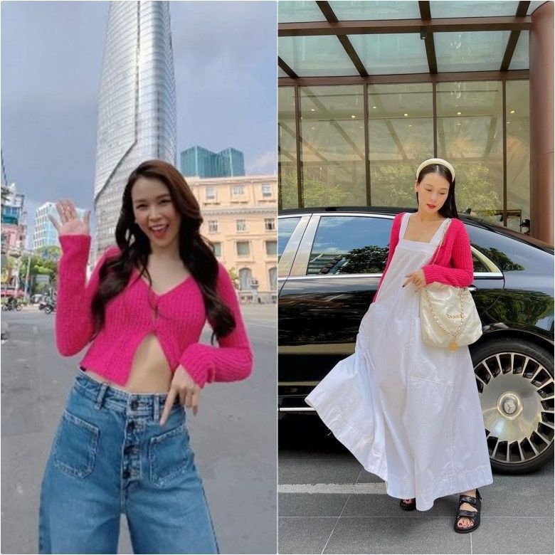 Chiếc áo cardigan dáng lửng trên từng là hot trend gợi cảm được nhiều mỹ nhân Vbiz ưa chuộng vào mùa hè của đại dịch. Tất nhiên, với món đồ đắt đỏ này, Sam còn mặc với 2 cách khác nữa. Cô khoác làm áo lửng với váy maxi hay mix với quần cạp cao ống suông cũng rất trẻ.