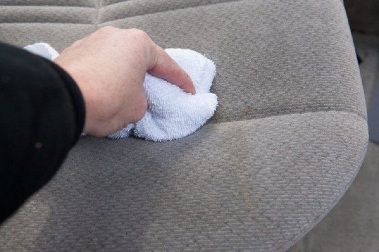 Bước 2: Bạn chọn một chiếc khăn mềm thấm vào giấm trắng hoặc nước sạch, sau đó lau nhẹ lên các vết bẩn. Hoặc bạn có thể lấy một ít baking soda rải đều lên các vết bẩn và để trong vòng 20 phút. Sau đó dùng khăn mềm sạch lau sạch qua bề mặt ghế sofa.