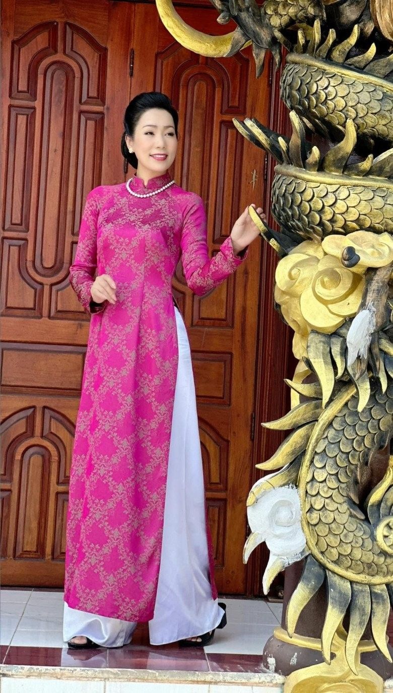 Vóc dáng chuẩn mực cùng gout thời trang trẻ trung giúp Trịnh Kim Chi luôn đẹp cuốn hút mỗi khi khoác lên mình tà áo dài.