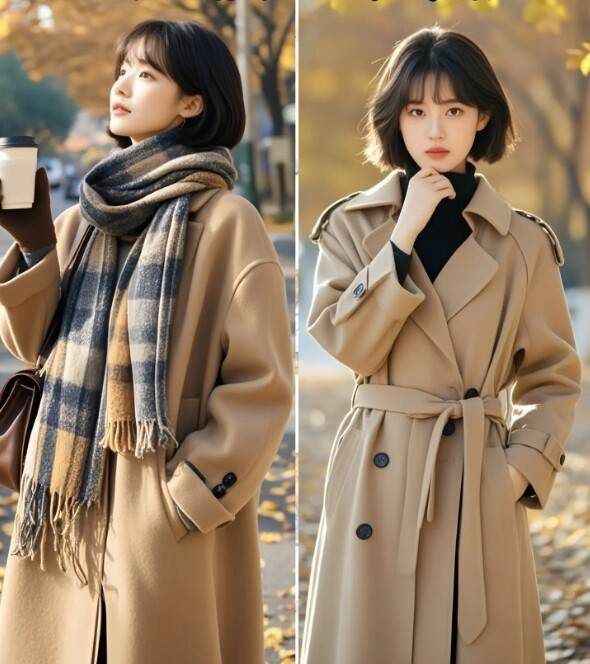 Áo khoác dạ luôn giữ vị trí “must-have” mỗi khi đông về. Với phụ nữ tóc ngắn, thiết kế có độ dài vừa phải là lựa chọn lý tưởng: đủ ấm áp nhưng vẫn tôn trọn vẻ gọn gàng, thanh lịch của mái tóc. Các gam màu kinh điển như lạc đà, xám hay đen không chỉ dễ phối đồ mà còn bền bỉ với thời gian, khó lỗi mốt.