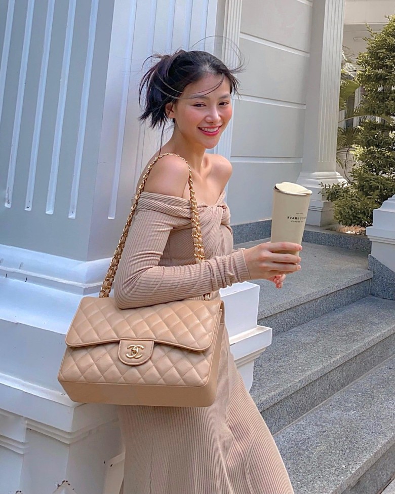 Thanh lịch và sang trọng, váy tweed luôn được các sao Việt ưu ái trong những dịp quan trọng đầu năm. Chất vải đứng dáng, chi tiết tinh tế giúp tổng thể chỉn chu, thời thượng và tôn lên khí chất nữ tính. Nên chọn thiết kế vừa người, phối cùng giày cao gót mũi nhọn, túi xách form cứng và phụ kiện ánh kim nhẹ để tăng vẻ sang trọng mà không bị “dừ”.
