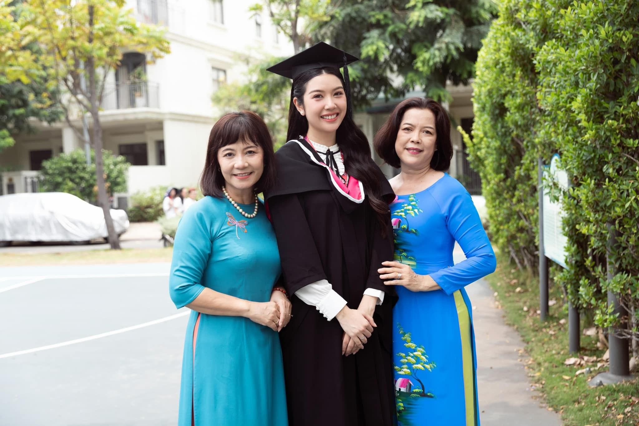 Á hậu Thúy Vân khoe ảnh chụp với mẹ ruột và mẹ chồng.
