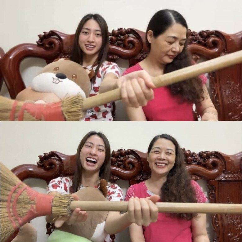 "Mỗi khi Linh hoặc em trai Linh không ngoan thì mẹ sẽ cho cái này xuất hiện. Các bạn ở Việt Nam chắc quen với cái này lắm. Nhưng mà các mẹ đều có sức mạnh siêu nhiên nên chắc cũng chẳng cần dùng đến cái chổi", Lương Thùy Linh chia sẻ.