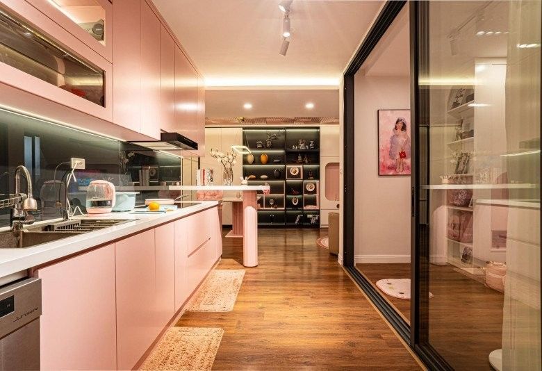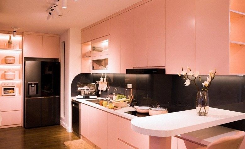 Căn bếp màu hồng khiến nhiều chị em phụ nữ mê mẩn.