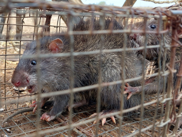 Trong lồng nhốt, 5 con chuột cống nhum vừa liên tục nhe răng to nhọn và phát ra những tiếng khè khè như rắn hổ mang. Giơ ngón tay còn mang vết sẹo lớn ông Quang cho hay, đó là vết tích do chuột cống nhum để lại. Chuột cống nhum rất dữ và có răng lớn, sắc. Khi nó cắn, cặp răng bấm sâu nên để lại vết thương rất lớn. Mỗi lần chuột dính bẫy, ông đều phải dùng que gỗ đè chặt rồi bóp sau gáy, từ từ gỡ bẫy và cho vào lồng.