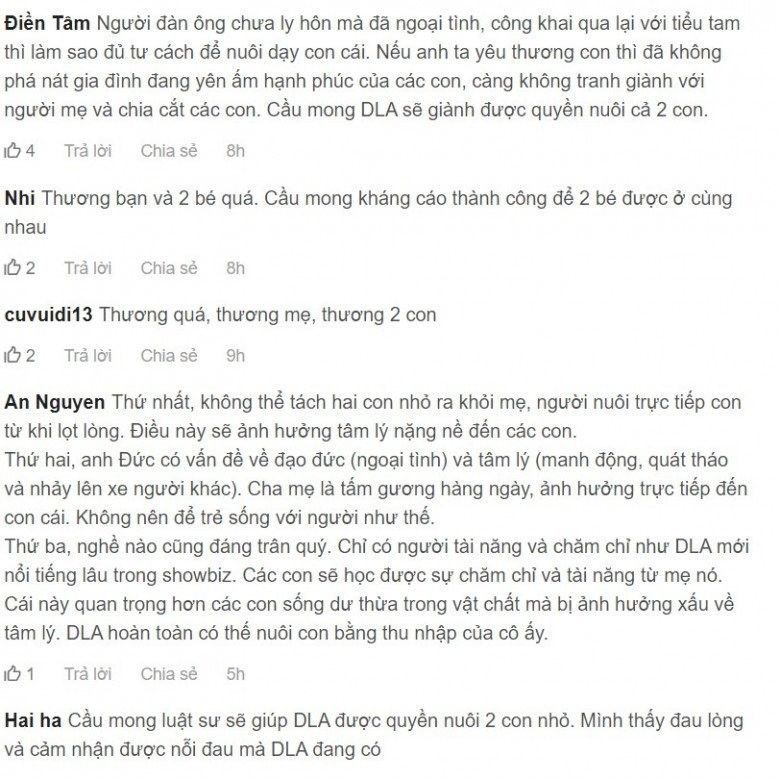 Những lời nói của Elly Trần nhận được sự đồng tình của cộng đồng mạng, nhất là các chị em bỉm sữa. Ai nấy đều thương thay cho Elly Trần và Diệp Lâm Anh nếu họ thực sự phải rời xa bất kì người con nào của mình.