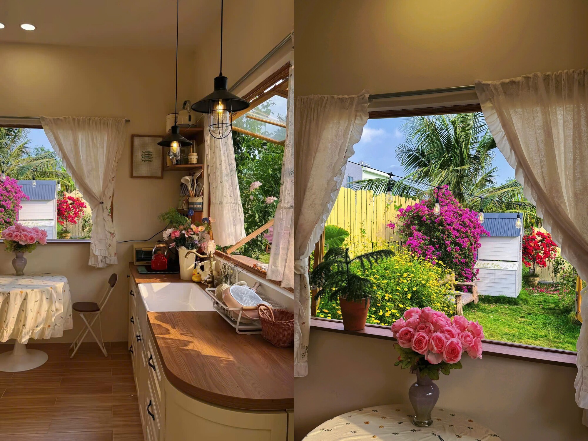 Không dừng lại ở đó, chị tiếp tục xây thêm một căn bếp nhỏ ngay trong khu vườn. Đây trở thành nơi chị có thể làm bánh, nấu nướng và tận hưởng những buổi chiều nhẹ nhàng bên gia đình. Khi khu vườn dần thành hình, cả nhà chị cũng có thêm một không gian để quây quần, vui chơi mỗi ngày.