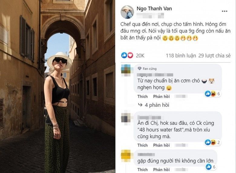 Có chồng là đầu bếp, Ngô Thanh Vân bận bịu việc quay phim, sản xuất nhưng vẫn duy trì được dinh dưỡng. Yếu tố quan trọng giúp cô giữ dáng thon gọn dù đã 43 tuổi.