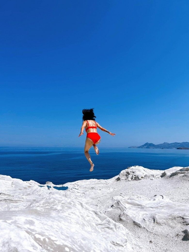 Mới đây, quý cô vừa "xả" loạt ảnh đi vi vu tới thiên đường biển đảo ở Hy Lạp. Đó là Milos được mệnh danh là hòn đảo xanh nhiều lần xuất hiện trên các bom tấn màn ảnh. Đáng chú ý hơn chính là màn thả dáng thon cùng những lời yêu thương mùi mẫn của cô tới vị Chef (ông xã) của mình.