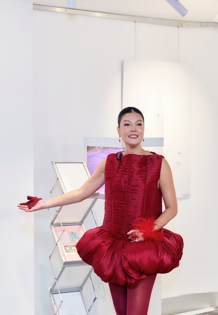 Triển lãm của cựu siêu mẫu Vũ Cẩm Nhung còn đón nhiều khách mời nổi tiếng khác như Hoa hậu Giáng My, cựu siêu mẫu Dương Yến Ngọc, MC Thanh Mai, Vũ Khắc Tiệp, Nam Trung, NTK Văn Thành Công, NTK Võ Việt Chung…