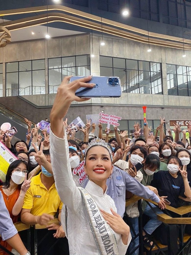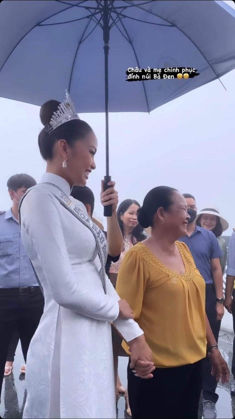 Đón chào nàng hậu có sự xuất hiện của mẹ ruột, vẫn là hình ảnh mộc mạc và đơn sơ như bao lần. Mẹ Ngọc Châu diện lại chiếc áo màu vàng nhạt có hoạ tiết ren trên nền vải voan. Đây là chiếc áo mà 6 năm trước cô diện để đến thăm con gái khi đang quay hình Next Top Model. Trong đêm Ngọc Châu đăng quang, Ngọc Châu viết trên trang cá nhân, “Vẫn chiếc áo đó 6 năm trước, 6 năm sau cũng không thay đổi... Con cảm ơn mẹ vì đã luôn bên con trong từng cột mốc của cuộc đời! Con yêu mẹ rất nhiều!”.