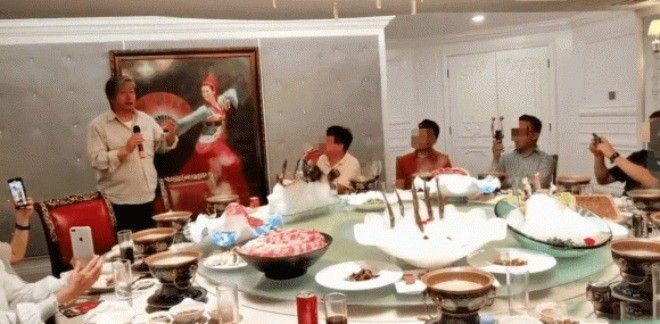 Vương Vệ Quốc tụ tập cùng bạn bè trong một nhà hàng sang trọng.