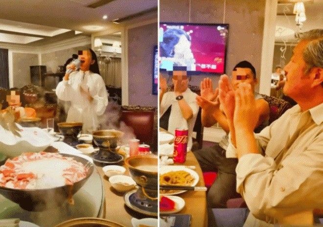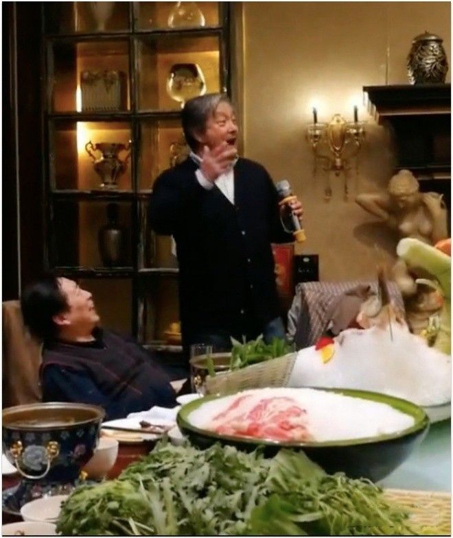 Tại bữa tiệc, Vương Vệ Quốc ăn mặc khá đơn giản dù ông đang ở trong một nhà hàng sang trọng. Nhiều người nhận ra nam nghệ sĩ có chút phát tướng và tóc cũng đã bạc trắng. Dù vậy, thần thái của Vương Vệ Quốc vẫn khá tốt.