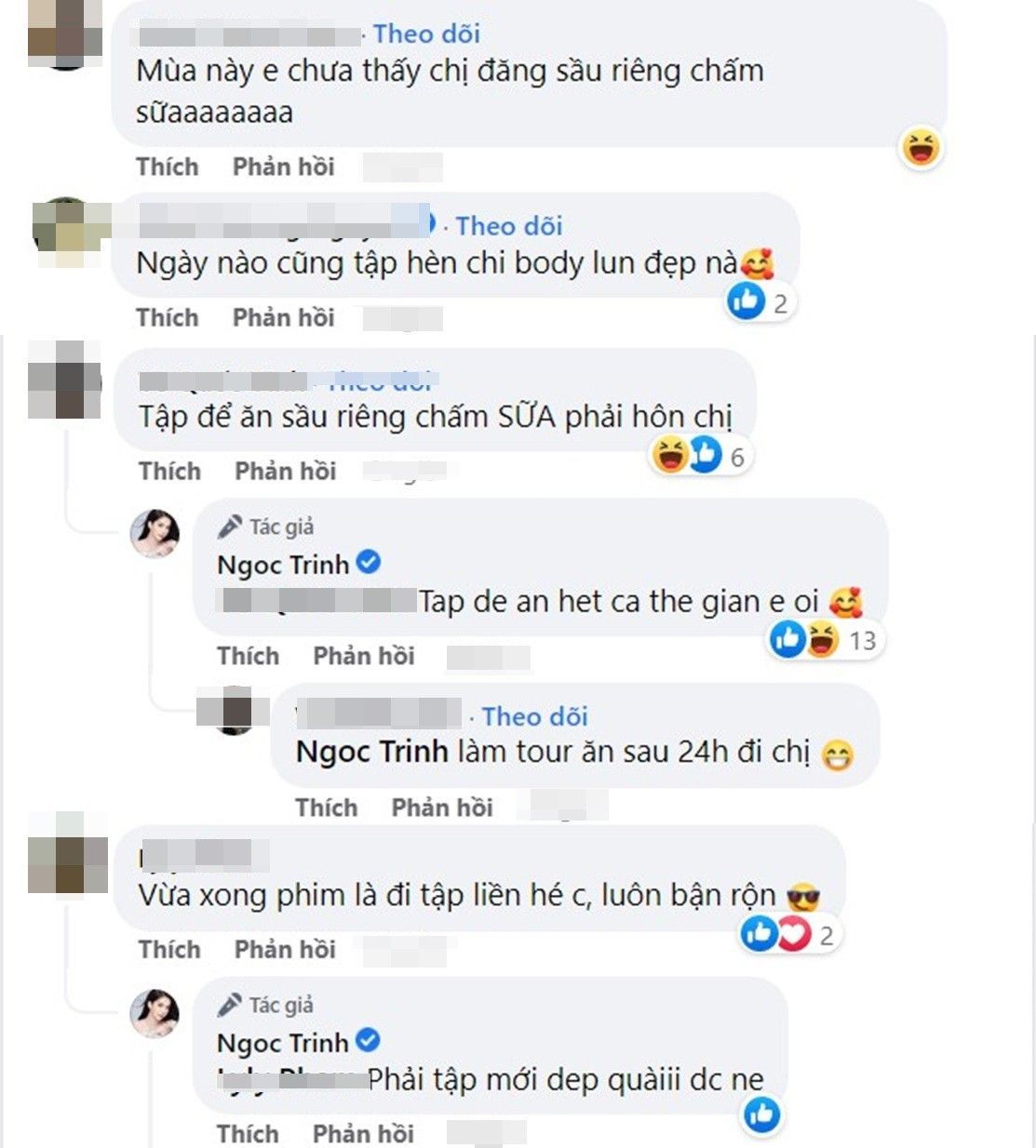Ngọc Trinh theo thời gian đã có sự chuyển biến rõ rệt về vóc dáng. Cô chia sẻ mình không còn giữ nổi số đo vòng eo 56cm như xưa nhưng may mắn rằng tỉ lệ 3 vòng vẫn rất hoàn hảo.