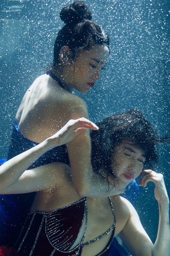 Nhưng khi quay, tôi không được đeo kính nên lúc xuống nước tôi có hoảng sợ vì mình không nhìn thấy gì, không thể xác định được phương hướng. Đầu tôi đập vào thành bể 7, 8 lần rất đau. Tôi cứ bám chặt lấy chị Hằng rồi ngoi lên trên thành bể. Quay xong tưởng vỡ đầu luôn. Nhưng khi xem lại trên màn hình thì thấy vất vả cỡ nào cũng xứng đáng”.