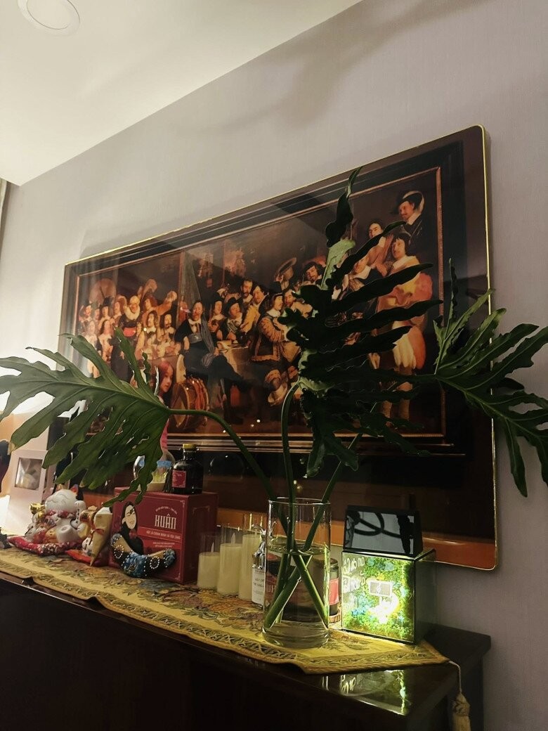 Việc tận dụng những cành lá từ chính khu vườn nhỏ để trang trí nhà cửa cho thấy sự tinh tế và lối sống gần gũi với thiên nhiên của nữ ca sĩ.