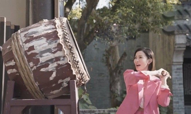 Xa Thi Mạn đánh trống "kêu oan" ở phim trường.