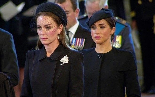 Mới đây, Vua Charles III đã dẫn đầu Hoàng gia Anh trong lễ rước linh cữu Nữ hoàng Elizabeth II từ Cung điện Buckingham đến Đại sảnh Westminster, London. Nếu như nhà Vua cùng với Công chúa Anne, Hoàng tử Andrew và Hoàng tử Edward - cùng 2 con trai William, Harry đi bộ sau linh cữu thì Kate và Meghan ngồi trên 2 chiếc xe đi ở phía sau. Được biết, cả hai cháu dâu đều có cách tôn vinh Nữ hoàng khác nhau.