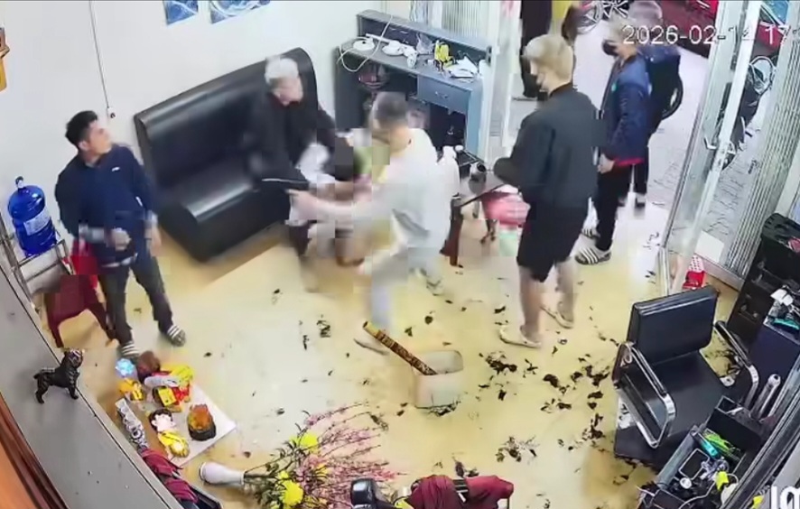 Theo nội dung đoạn video trích xuất từ camera tại một tiệm cắt tóc trên địa bàn phường Hồng Châu (tỉnh Hưng Yên), sự việc xảy ra vào khoảng 17h26 ngày 14/2.