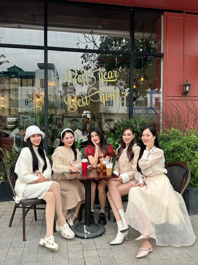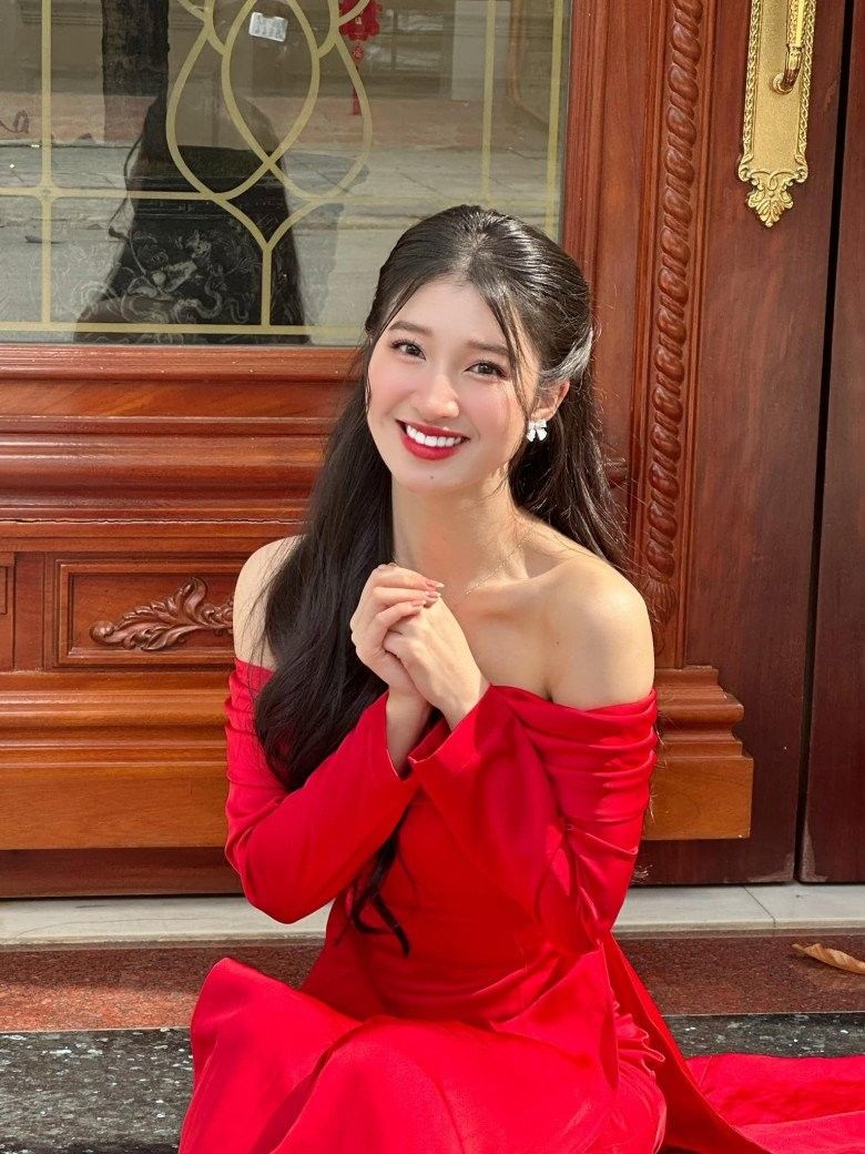 Người đẹp mix & match với màu son đỏ đậm hút mắt. Cô nũng nịu cho rằng, chưa kịp tận hưởng hết dư vị của Tết đã hết Tết.