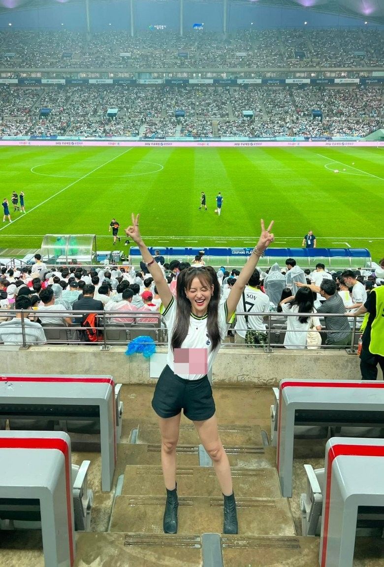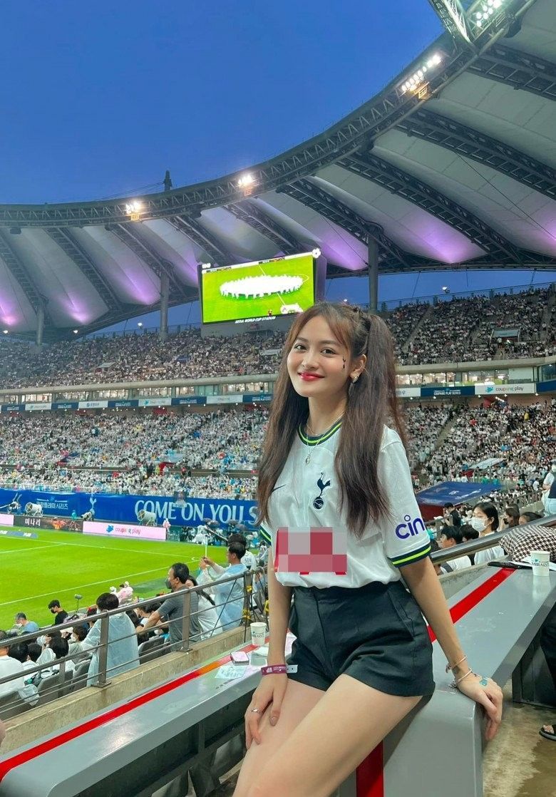 Mới đây, cô nàng đã chịu chi khi ra thẳng sân World Cup Seoul của Hàn Quốc để cổ vũ đội nhà là Tottenham Hotspur trong trận đấu với K-league.