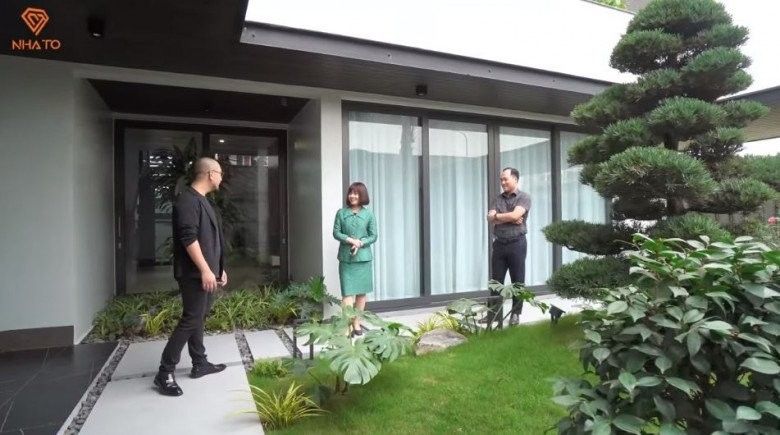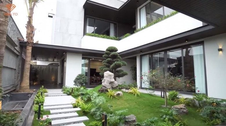 Từ trong ra ngoài, căn biệt thự được thiết kế theo kiểu Mỹ với tông màu trầm, mang phong cách hiện đại. Bên ngoài, căn biệt thự sử dụng gạch, đá ốp xám. Bên trong có khuôn viên sân vườn khá rộng.