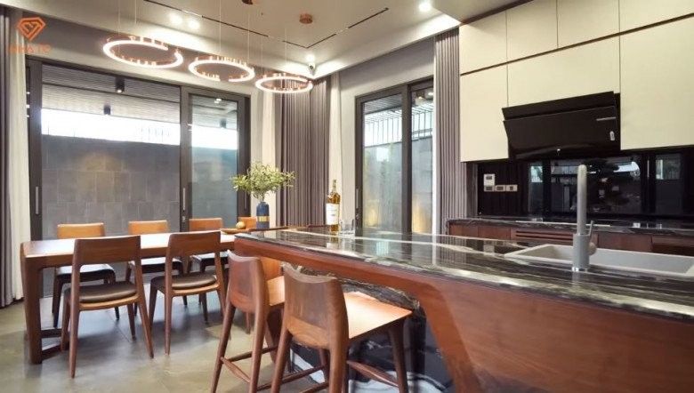 “Công trình này đến bây giờ cả chồng và con của tôi đều chưa biết đâu, tôi giấu. Chồng, con và tôi đều có những phong cách khác nhau, đam mê của tôi là dòng nội thất gỗ óc chó, kiểu Mỹ cơ”, chị Hiền chủ nhà chia sẻ.