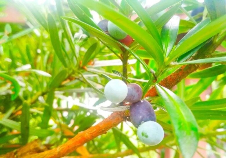 Thứ hai, tùng la hán cho quả có hình dáng giống các vị La Hán. Những hạt quả này trải qua quá trình đổi màu từ xanh sang vàng, rồi từ vàng chuyển sang tím, mỗi quả mang một dáng vẻ khác nhau, hàm chứa ý nghĩa giữ của cải, giữ bình an cho gia đình.