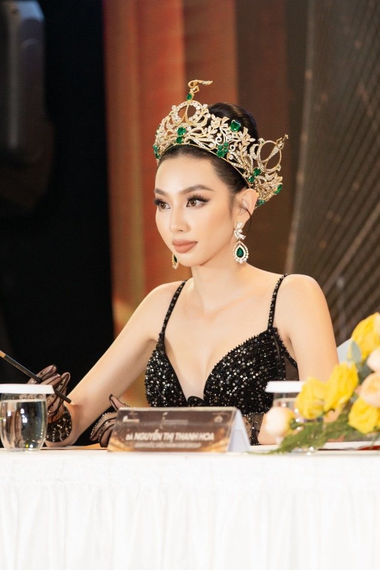 Xuất hiện lộng lẫy trên thảm đỏ với chiếc váy đen thanh lịch của NTK Đỗ Long, Nguyễn Thúc Thuỳ Tiên có những chia sẻ độc quyền với Eva.vn như sao: “Thuỳ Tiên hôm nay diện váy của NTK Đỗ Long, chiếc váy được anh và ekip thực hiện rất là gấp rút để kịp cho sự kiện lần này. Về việc có trao lại vương miện hay không thì Tiên cũng chưa chắc vì chị Dung là người quyết định, nhưng Tiên nghĩ nhiều khả năng là sẽ trao lại đó. Nhiều khi mình cũng muốn nhưng phần này phụ thuộc vào BTC nữa, Tiên cũng chỉ là thành viên ban giám khảo mà thôi. Về tiêu chí để Tiên lựa chọn thí sinh chắc chắn sẽ có những điều tiệm cận với Miss Grand International như vẻ đẹp, hình thể, sẵn sàng làm việc ngoài ra Tiên còn tìm kiếm một cô gái dám nói lên quan điểm của mình. Tiên mong muốn được nhìn thấy một cô gái thẳng thắn và khi cô ấy nói chuyện mình phải thực sự ấn tượng với cô ấy, đó là điều mà Tiên đang mong muốn tìm kiếm. Tiên đang rất bất ngờ vì có nhiều thí sinh mạnh cũng như có những thí sinh mà Tiên yêu thích ở các cuộc thi khác xuất hiện tại Miss Grand Việt Nam lần này, hào hứng và háo hức để xem các cô gái sẽ thể hiện như thế nào tại đường đua này. Các cô gái hãy gửi đơn đăng ký thật nhanh lên nhé".