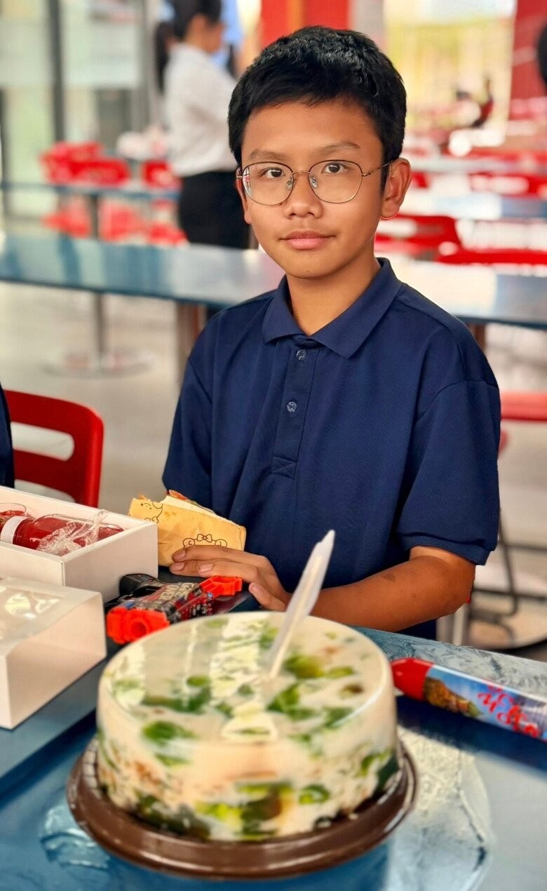 Con trai Nguyễn Văn Chung có ngoại hình tuấn tú ở tuổi 13.