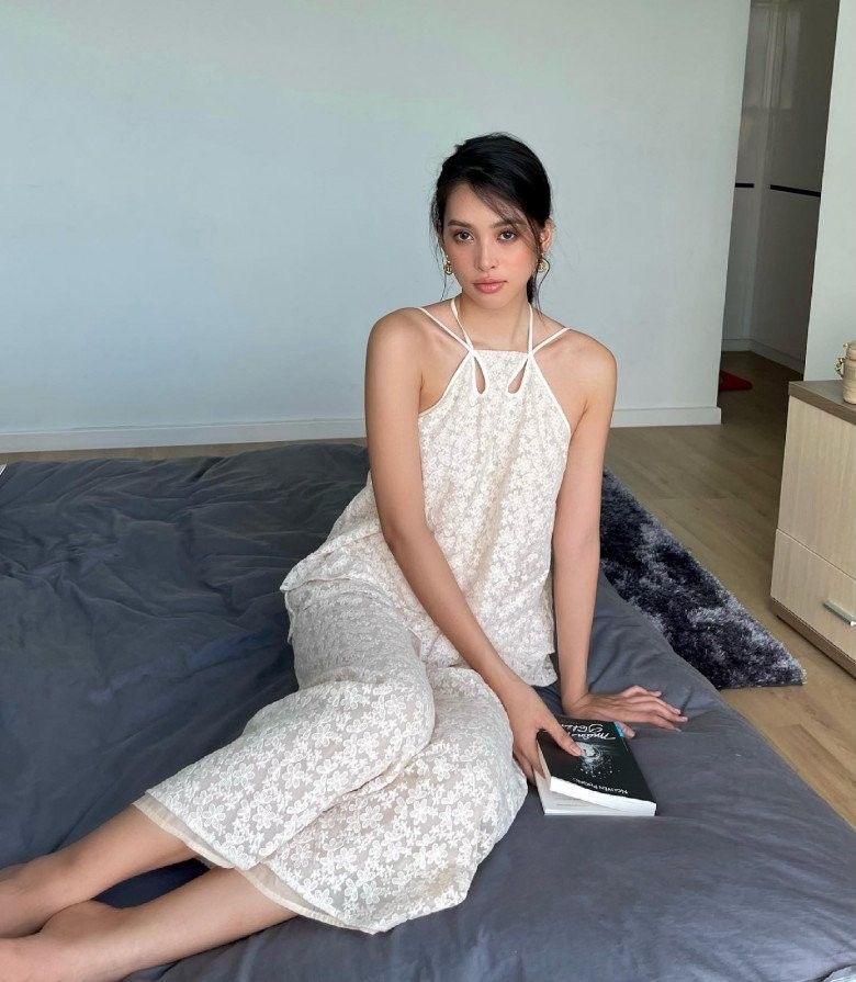 Chi Pu cũng mê mẩn những set đồ bộ mỏng manh khi ở nhà.