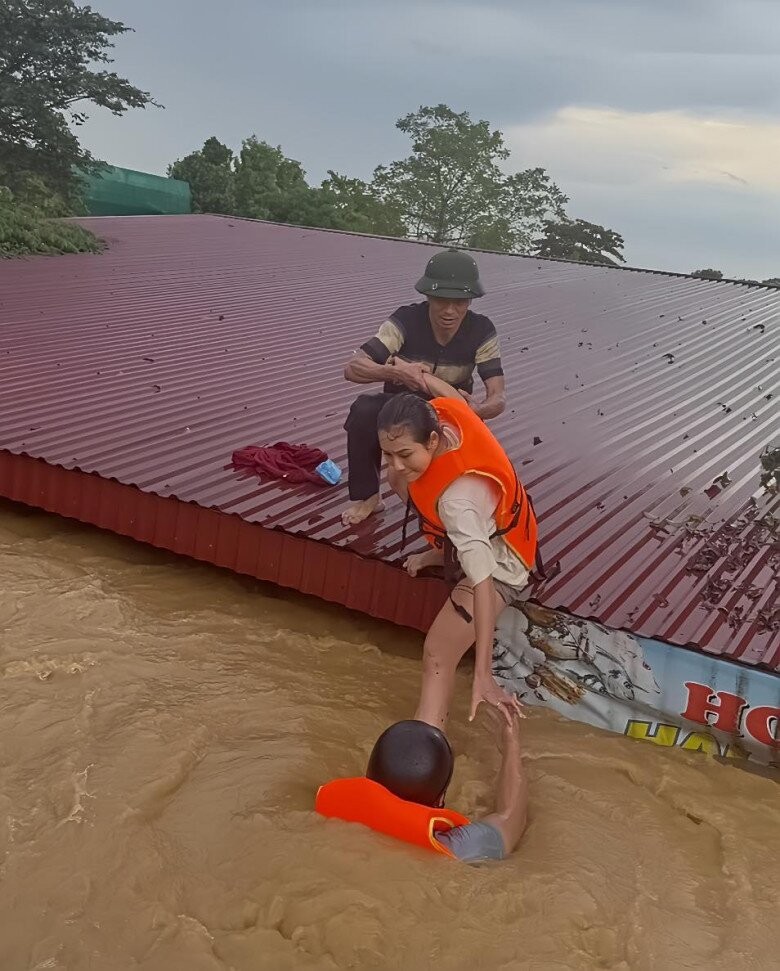 "Táo" Vân Dung không cầm được nước mắt khi đọc thông tin về bão lũ. Cô chia sẻ: "Giữa những cơn giông gió gào thét, biển nước ngập mênh mông, hình ảnh mái nhà chênh vênh, những cánh đồng chìm trong biển nước, và ánh mắt lo âu của người dân khiến ai cũng nghẹn ngào. Nhưng cũng chính nơi ấy, ta thấy được sức mạnh kiên cường và tinh thần đoàn kết: những bàn tay nắm chặt nhau, những đoàn người không quản hiểm nguy để cứu trợ, các lực lượng chức năng không ngại khó khăn gian khổ cứu hộ nhân dân với niềm tin mãnh liệt rằng sau cơn mưa, trời sẽ lại sáng".