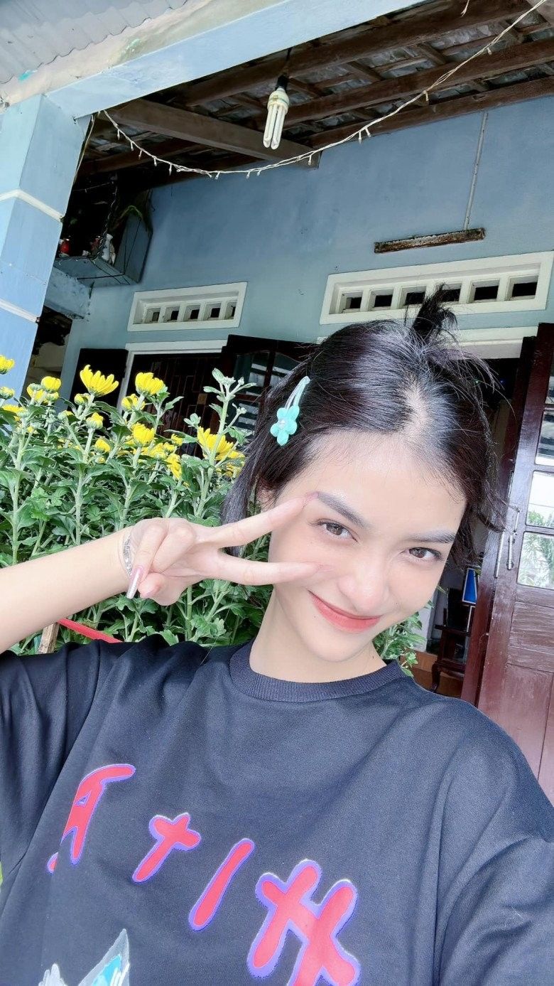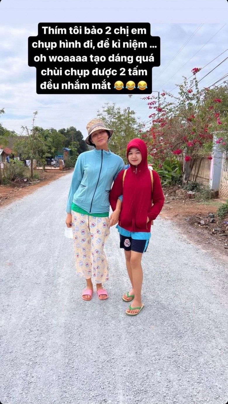Người chị em thân thiết với Đỗ Thị Hà là á hậu Kiều Loan lại đơn giản với áo phông oversized. Cô còn dí dỏm "nhảy" chiếc kẹp của cháu gái để làm điệu cho mái tóc.