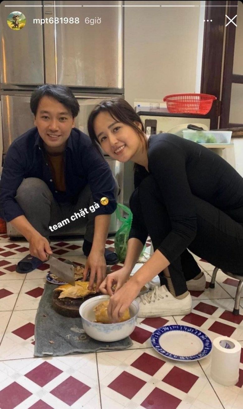 Mai Phương Thuý lại đảm đang vào bếp với "nguyên cành" đen co giãn. Dù chẳng trau chuốt chút son môi nào nhưng nàng hậu vẫn tươi tắn rạng rỡ.