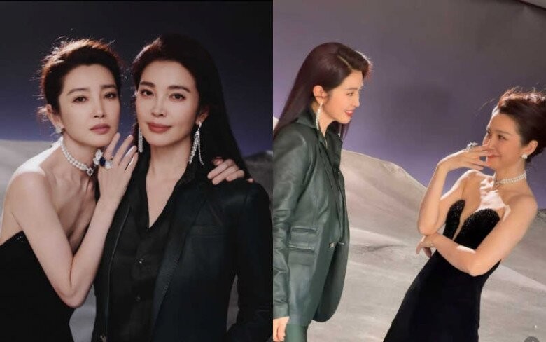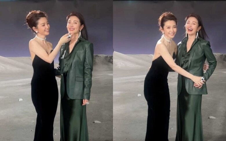 Trong khung hình chung, Lý Băng Băng diện váy đen thanh lịch, toát lên vẻ quyến rũ đậm chất minh tinh quốc tế. Bên cạnh cô, em gái chọn vest xanh đậm, phong thái chững chạc và sắc sảo. Một người mềm mại, một người mạnh mẽ, nhưng khi đứng cạnh nhau lại tạo nên hiệu ứng đầy ấn tượng, không ai bị lu mờ.