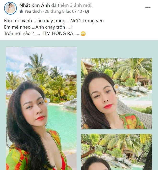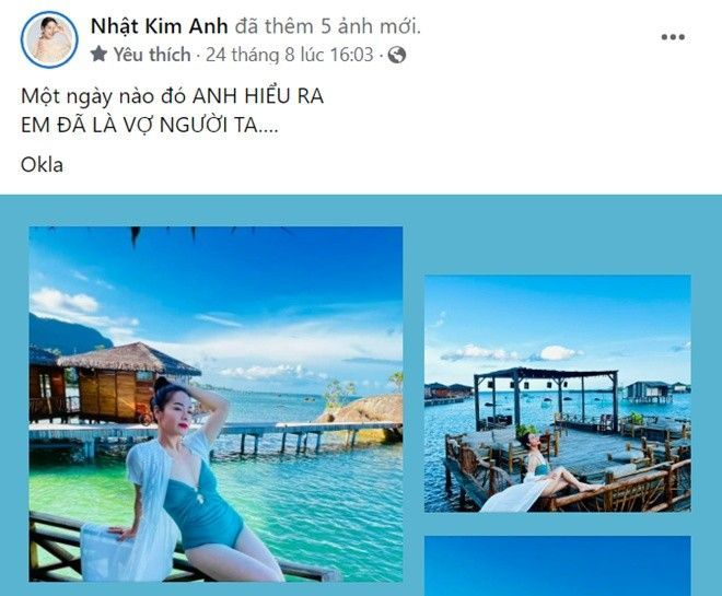 Kể từ sau chuyến du lịch nước ngoài cùng chồng cũ, Nhật Kim Anh liên tục có những động thái lạ trên trang cá nhân. Nhiều người hâm mộ đặt ra nghi vấn có lẽ nữ diễn viên đã buông bỏ được chuyện cũ và sẵn sàng cho một mối quan hệ mới, song cũng không ít khán giả hi vọng cả hai sẽ tái hợp vì con.