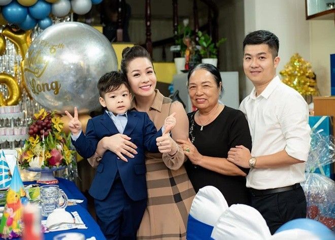 Đầu tháng 8, tôi và anh Lộc sẽ cùng đưa con đi du lịch Singapore và Malaysia để thưởng cho thành tích học tập tốt của con. Cu Tin phấn khởi lắm, mới gọi cho tôi khoe: 'Tin sắp được đi nước ngoài, Tin sẽ học tiếng Anh để phiên dịch cho ba mẹ'", nữ diễn viên cho biết.