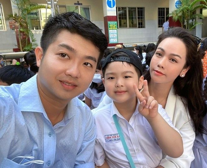 "Hồi đầu tháng, anh Lộc nhắn tin hỏi tôi có về dự lễ bế giảng cùng con được không. Dù rất bận, tôi thu xếp về trước 1 ngày. Lần đầu tiên sau 4 năm, anh Lộc để tôi được đưa con đi chơi riêng. Tôi mừng lắm. Sau đó, tôi và anh Lộc cùng đưa con đi ăn. 6h sáng hôm sau, chúng tôi cùng đưa con đến trường. Anh Lộc chủ động đề nghị chụp ảnh chung 3 người. Tối đó về, cu Tin vui đến mất ngủ.
