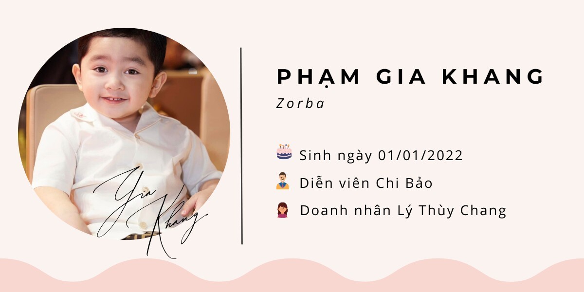 Được biết, con trai diễn viên Chi Bảo có tên thân mật là Zorba và có tên thật tiếng Việt đầy đủ là Phạm Gia Khang.Đệm “Gia” thực chất là lấy từ đệm của bố diễn viên, Chi Bảo tên đầy đủ là Phạm Gia Chi Bảo.