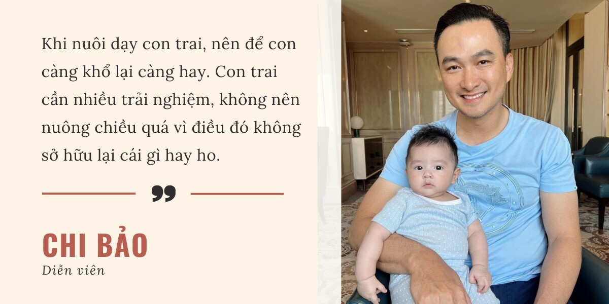 Chia sẻ thêm về cách nuôi dạy con trai, nam diễn viên Chi Bảo cho biết anh cưng chiều con trai nhưng nghiêm khắc không kém. Từ khi con trai còn nhỏ, Chi Bảo đã luôn huấn luyện con ăn ngủ đúng giờ nên hiện tại, Gia Khang bớt kén ăn và rất ngoan ngoãn.