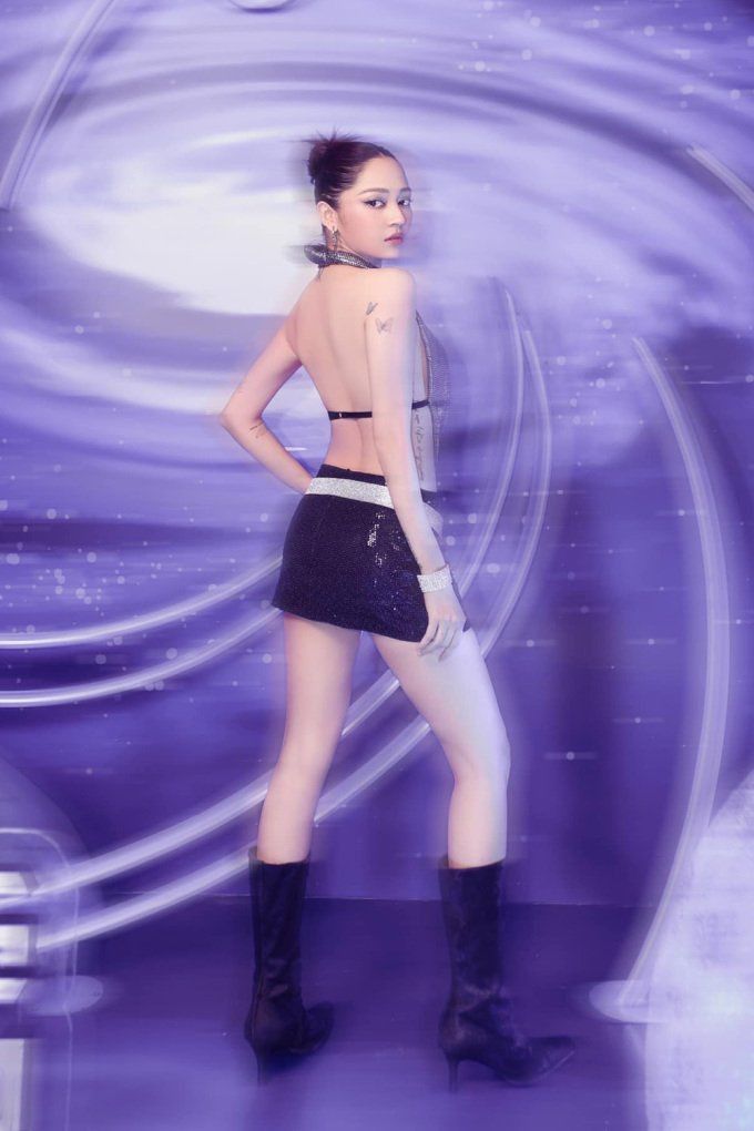 Cũng với chiếc váy ngắn cũn cỡn, Bảo Anh cũng không kém cạnh "cô giáo Hoa hậu" khi chọn một chiếc áo yếm, có phần lưng áo chỉ là một bản lưng bé tí, khiến dân mạng không biết nhìn vào đâu, vì đâu đâu cũng "hở". Với chiếc váy ngắn vừa dài đủ vòng 3, có lẽ Bảo Anh cũng không thể đứng ngồi thoải mái.