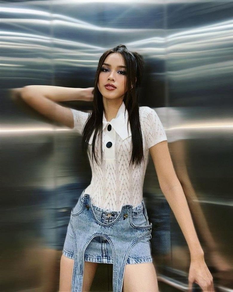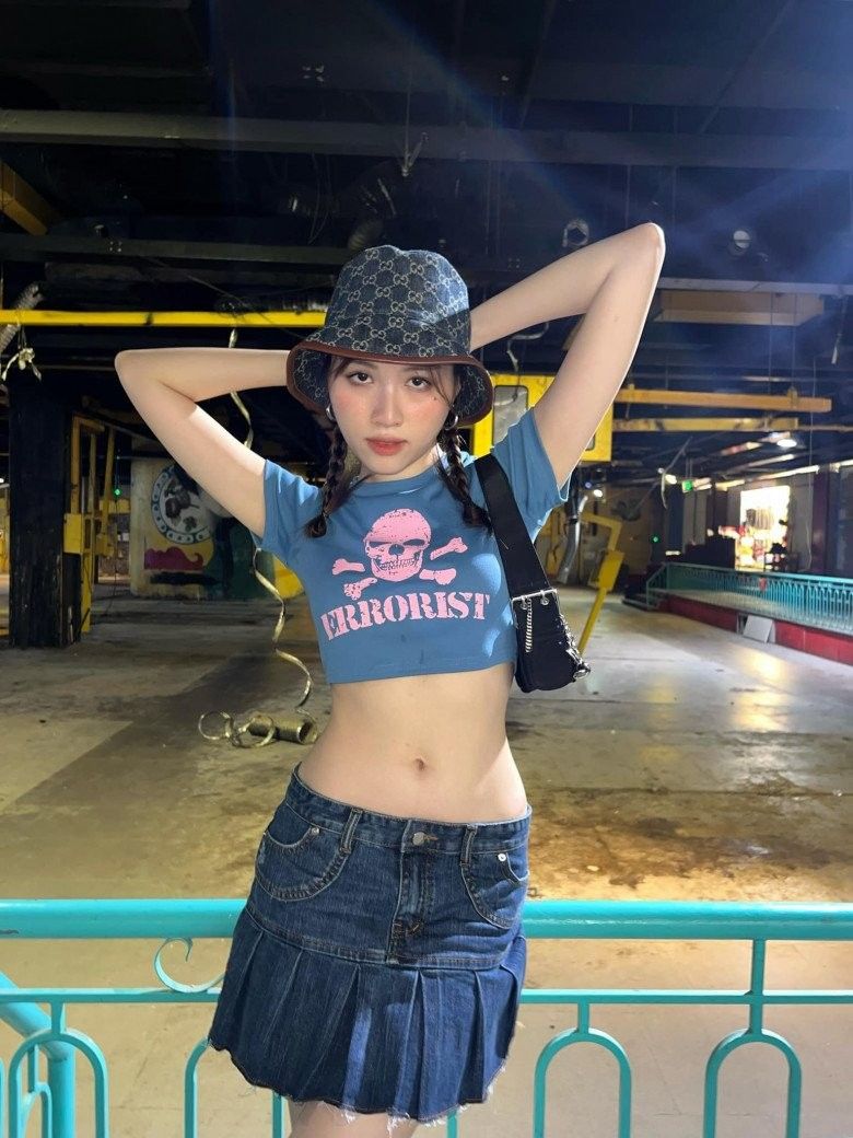 So với Như Vân, chiếc váy của nữ MC song ngữ cũng ngắn cũn cỡn chẳng kém nhưng phong cách của cô có phần "nhí nhảnh" hơn. Không theo đuổi hình tượng sexy, trưởng thành mang nét Tây như "cô giáo Hoa hâu", Thanh Thanh Huyền thường chọn những item có phần năng động và trẻ trung hơn như outfit với chân váy jeans cùng áo thun "nhí nhảnh".