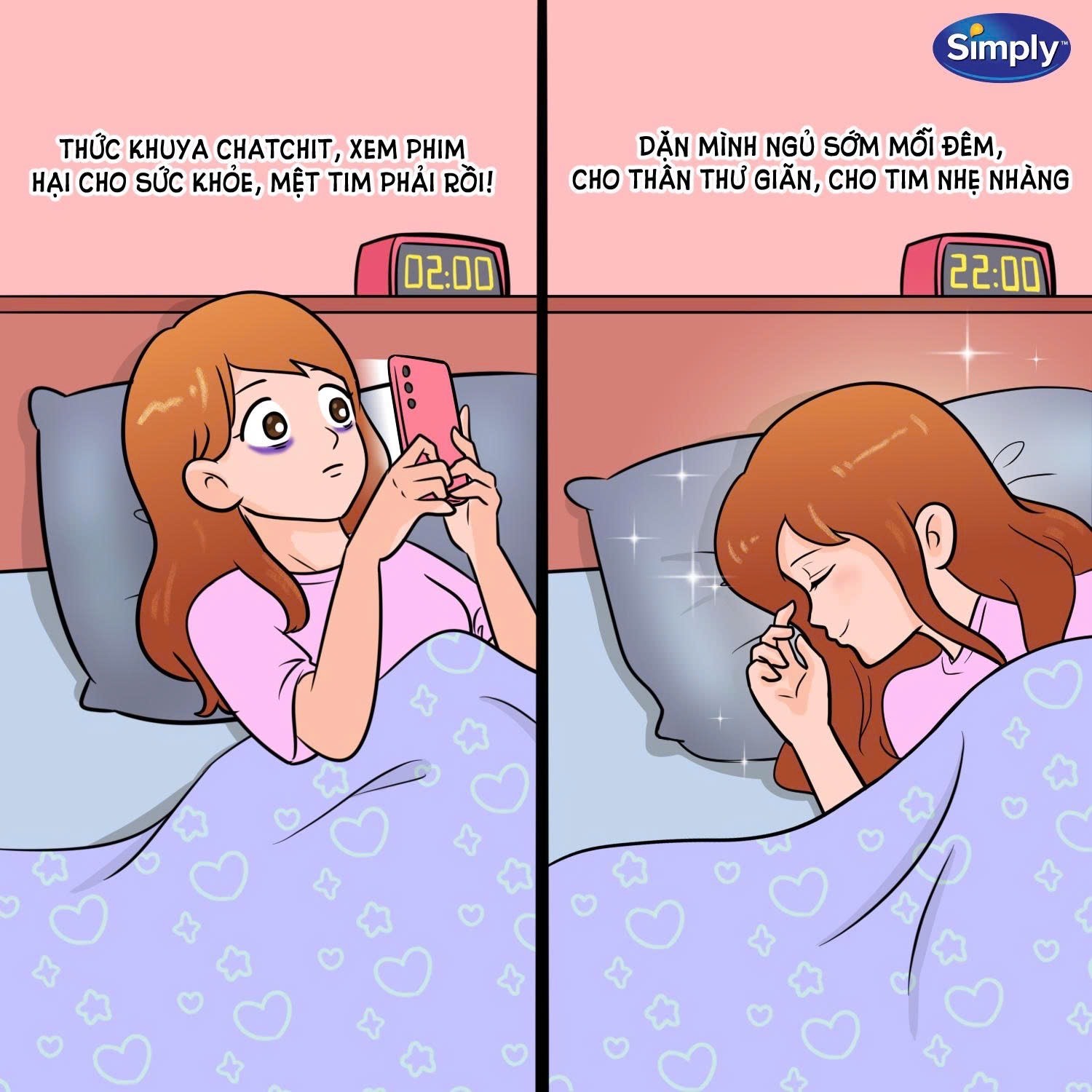 Đi ngủ sớm để trái tim có thêm thời gian thư giãn và hồi phục sau ngày dài.