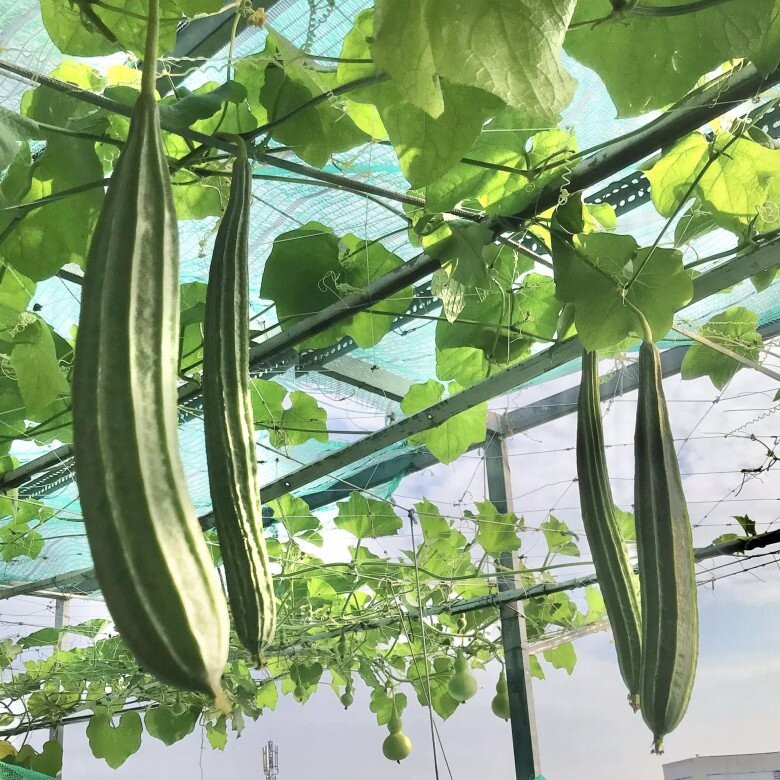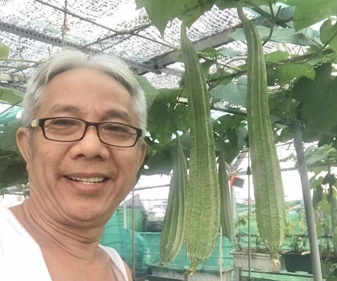 Quả thật, nhìn giàn mướp khía với những trái dài thòng, căng mọng hay những chùm đậu đũa sai trĩu quả, mướt rượt là đủ thấy công sức ông bỏ ra lớn đến nhường nào.
