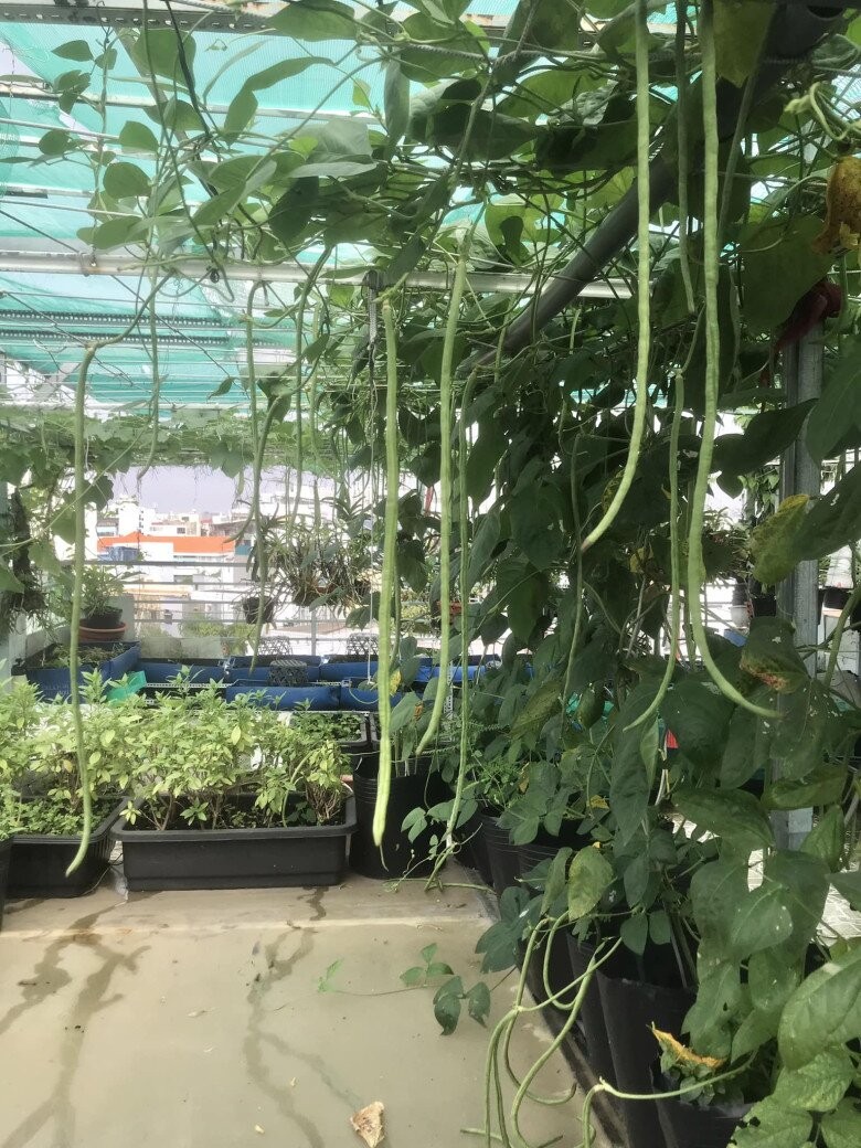 Nghệ sĩ hào hứng chia sẻ về thành quả lao động của mình: "Mùa mướp khía mới ra trái... ngon lành!" "Cây trái trong vườn trên sân thượng nhà tui nè!", Đậu đũa mùa mới"...