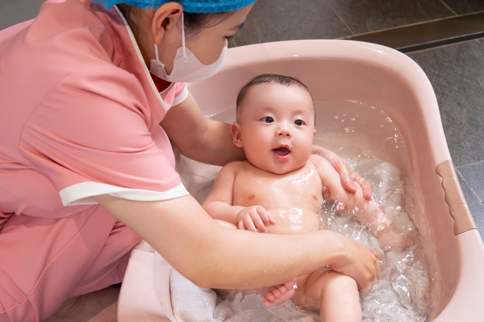 Những em bé sơ sinh sẽ được các cô điều dưỡng chăm sóc: từ tắm thảo dược, vệ sinh rốn an toàn, vận động đa giác quan; đến theo dõi, sàng lọc sớm những dấu hiệu bất thường như vàng da, hăm, nấc kéo dài, đồng thời tư vấn bố mẹ cách chăm sóc bé phù hợp, chuẩn y khoa.