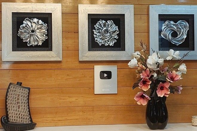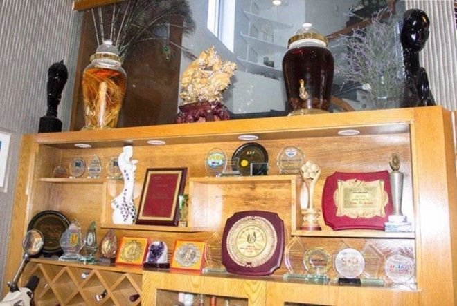 Bên trong nhà có nhiều kỷ niệm chương của anh.