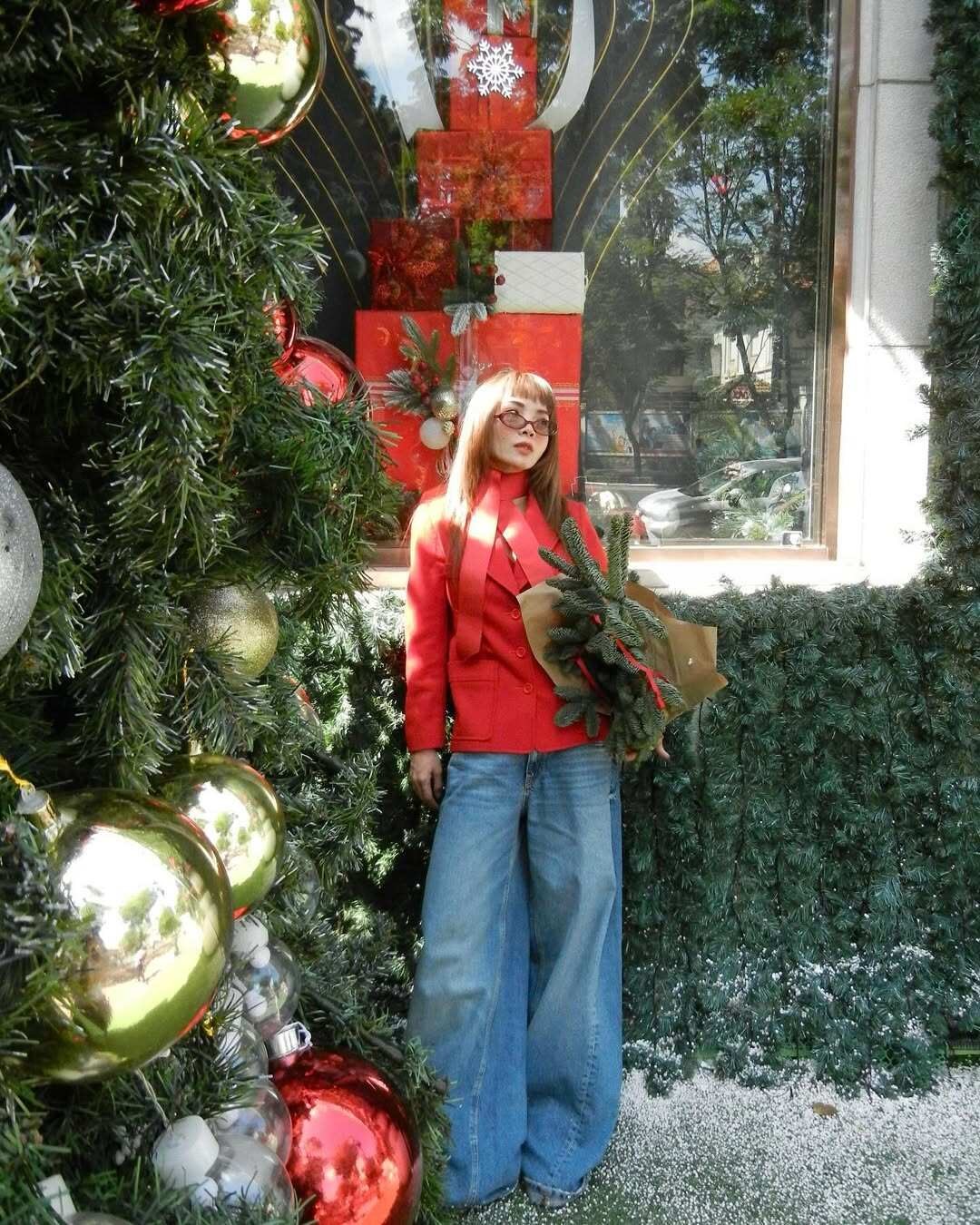 Trong bức ảnh chụp dịp lễ Noel, Yến Trang diện áo đỏ nổi bật phối cùng quần jeans ống rộng. Nhờ jeans có màu trung tính, chiếc áo đỏ không bị phô mà trở thành điểm nhấn vừa đủ, giúp tổng thể hài hòa và bắt mắt.