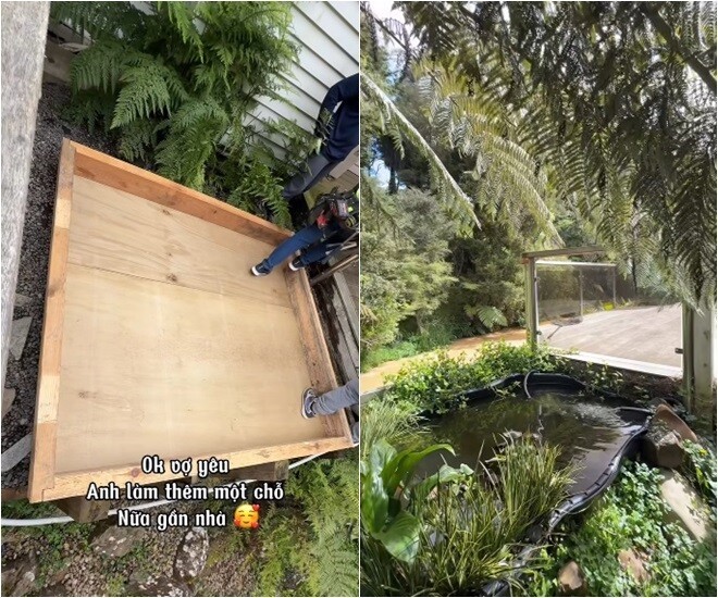 Cảnh quan ngoài trời cũng được ông xã chiều theo ý của nữ diễn viên sinh năm 1987. Khi cô nói thích chỗ nuôi cá cảnh nhưng hơi xa, chồng cô liền làm thêm một chỗ gần nhà để vợ ngắm cá.