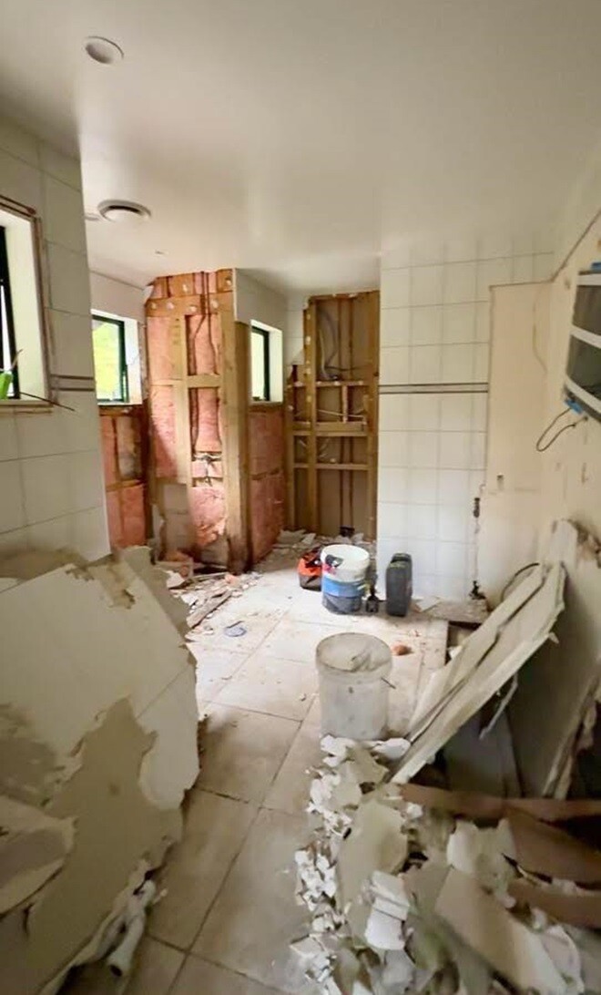 Kết quả là nhà tắm được đập ra sửa lại. Cô dí dỏm: "Bụi và ầm ạ. Biết thế em không khen cổ kính. Sửa chắc vài tháng mới xong".